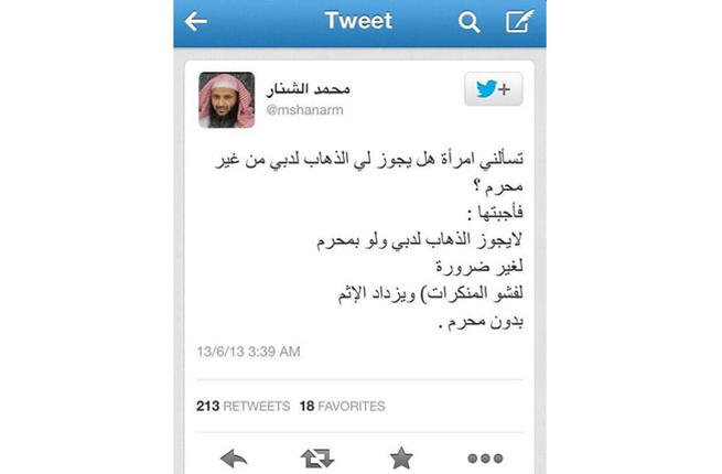 أثارت فتوى لأحد الشيوخ على تويتر بإسم محمد الشنار عن تحريمه السفر الى مدينة دبي الاماراتية، موجة من الجدل والتعليقات تحت هاشتاغ السفر لدبي حرام، رغم أن لا أحد متيقن من حقيقة هذا الحساب وهل هو يعود الى احد شيوخ الدين الحقيقيين أم لا: