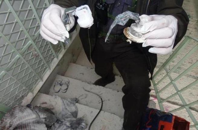 A Syrian reporter holds what he believes to be the remains of the canisters that held the poisonous gas dropped form helicopters onto the people of Saraqeb. ( image courtesy of Yalla Souriya )