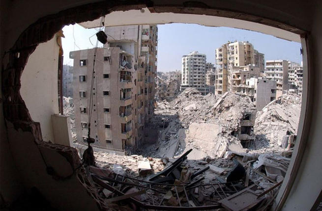 In 2006, in the aftermath of the July war, photographer Gilbert Hage took a series of shots of the rubble-strewn streets and collapsing buildings where Israeli bombs had rained down on Dahiyeh – that part of greater Beirut that happens to sprawl south of the city’s Ottoman-era municipal boundary.