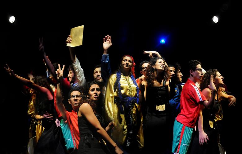 Their first production was called Daba Theater Citizen. Its show News from The Theater was the main event and became very popular among audiences in Rabat. At the beginning of each month, hundreds of people from various age groups and social classes would come to the Gerard Hall at the French Institute in Rabat. InNews from The Theater the events of the past months were turned into theater, written by young people in workshops directed by Idriss Kassis and others. They would dissect events occupying the main headlines and satirize them, producing a critique of real events. They took on many topics, such as parliamentary elections, political leaders, relationships between young people, virginity, immigration, tense relations with their Algerian neighbors, lost football matches and, of course, extremism.