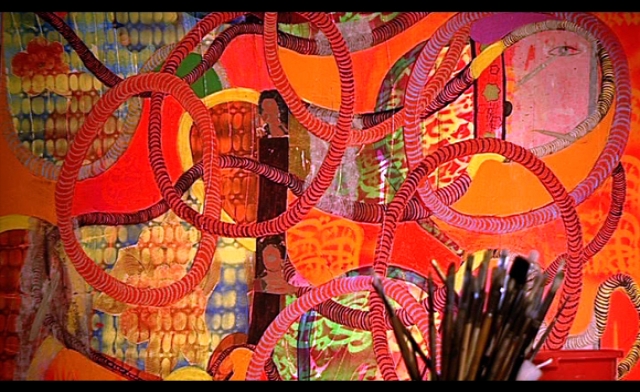 “I use red as it embodies emotional warmth. It’s a cozy color,” described the artist.