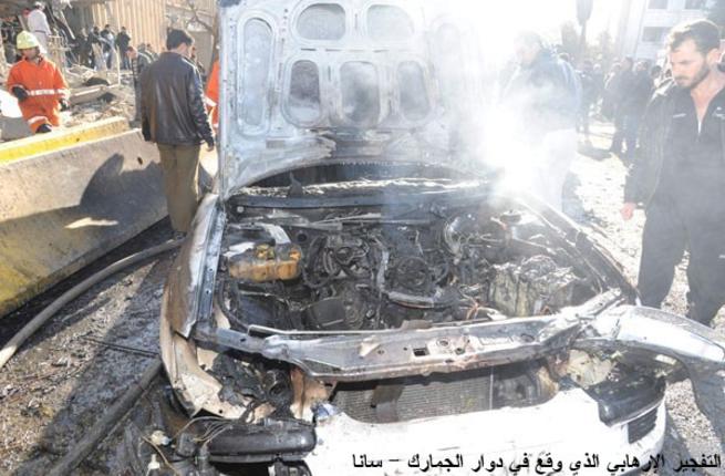 On March 3, two civilians were killed and 20 wounded in a suicide bombing in the city of Deraa, cradle of the protest in the south, reported the official SANA news agency. On 6 January, a bomb struck the center of Damascus leaving dozens dead and wounded, two weeks after a similar attack blamed by the authorities on Al-Qaeda and the opposition. On the 10th of February, two suicide car bomb rocked Aleppo, the second largest city in Syria, killing 28 people and injuring 235.