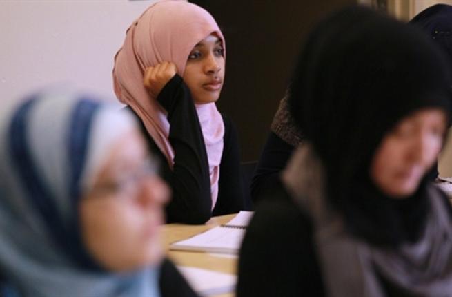 UNITED STATES, BERKELEY : BERKELEY, CA - AUGUST 30: Naeemah Gilchrist (C) looks on during a lecture at Zaytuna College August 30, 2010 in Berkeley, California. Zaytuna College opened its doors on August 24th and hopes to become the first accredited four-year Islamic college in the United States.
