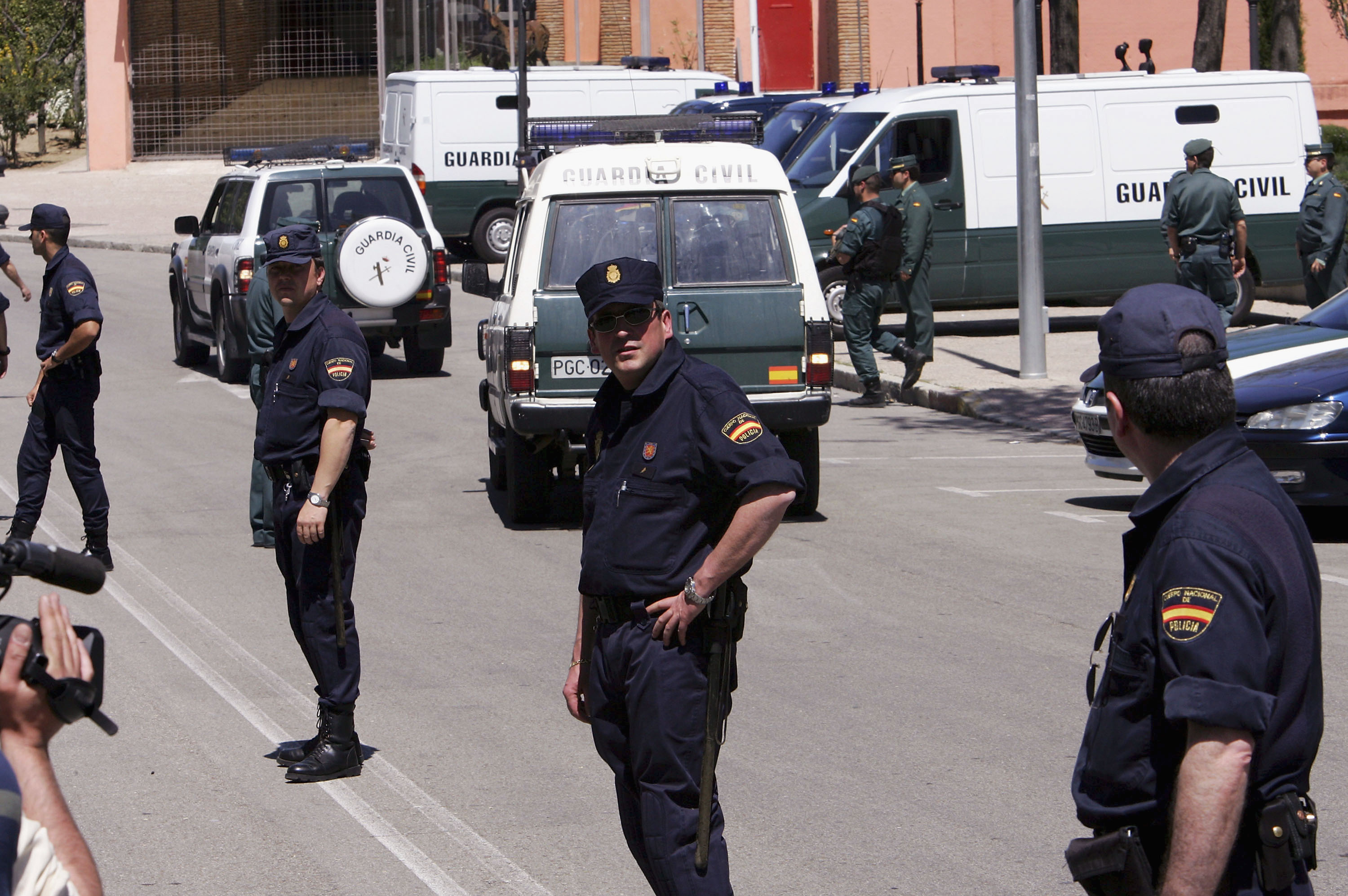 Spanish police outside the courthouse during the trial of the Madrid bombing suspects in 2005 (Getty)