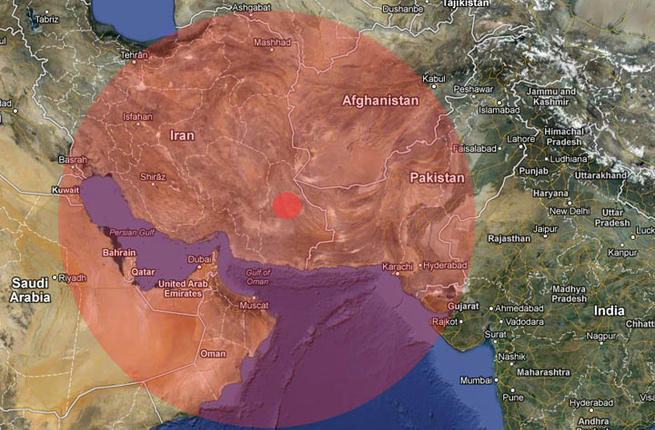 The earthquake struck 86km south east of the city Khash, near the Iran-Pakistan border (Google Maps)
