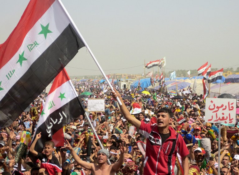 Iraqi demonstrators shout slogans during an anti-government protest in the western city of Ramadi on Friday. (AFP PHOTO/AZHAR SHALLAL)