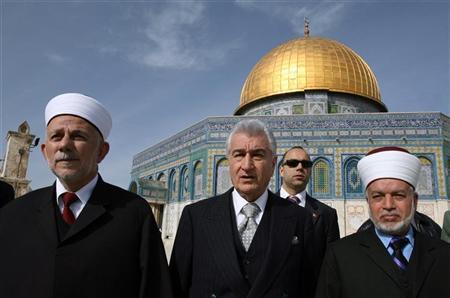 Jerusalem Mufti Mohamed Hussein (r) at the al-Aqsa mosque