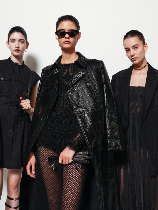كما طغى اللون الأسود على ملابس السهرة التي جاءت بأقمشة ربيعية مميزة ودافئة بعض الشيء، حيث برزت موديلات الفساتين المتعددة بين الفساتين الـ"ميني" والفساتين الطويلة والمزينة بشرائط حريرية باللون الأسود أيضا لتزيد من جمال التصاميم الراقية.