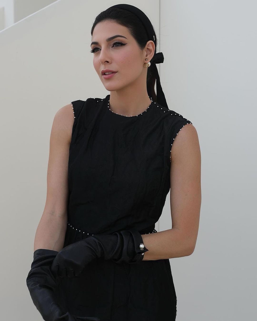 بفستان مميز وبصيحة القماش المجعد، أطلت الفنانة العربية بلوك راقي وجميل مأخوذ مباشرة من مدرج عرض العلامة الفرنسية "ديور" لموسم خريف وشتاء 2023-2024 باللون الأسود بفستان "ميدي" راقي ومميز بتفاصيله التي زينت الحواف بتطريز أبيض نقي لامع ورصين. مع تفاصيل الـ"زم" الراقي التي حددت خصرها بأسلوب أنيق أبرز قوامها الرشيق.
