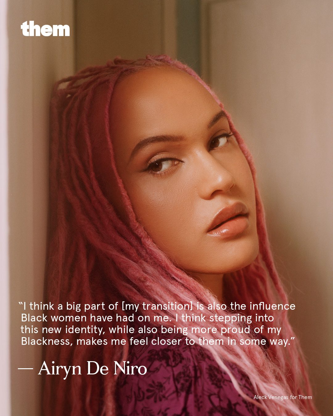 Last year, Airyn De Niro attributed her decision to accept her femininity to the experiences of openly transgender women, such as Laverne Cox and lesbian icon Marsha P. Johnson.