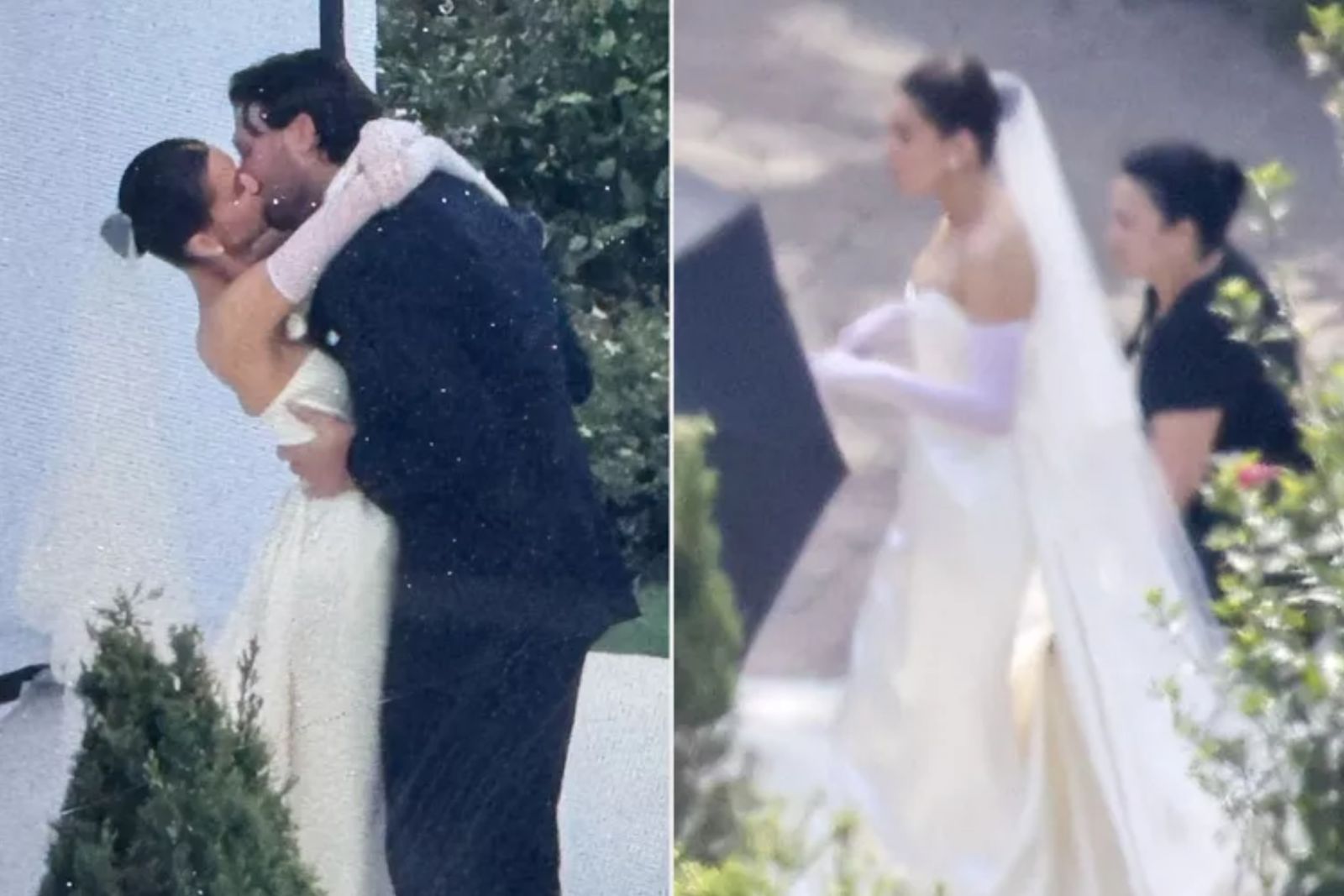 The photographs that were obtained by "People" magazine show Steinfeld walking down the aisle while wearing a white strapless gown. Additionally, the photographs show the couple enjoying a kiss.