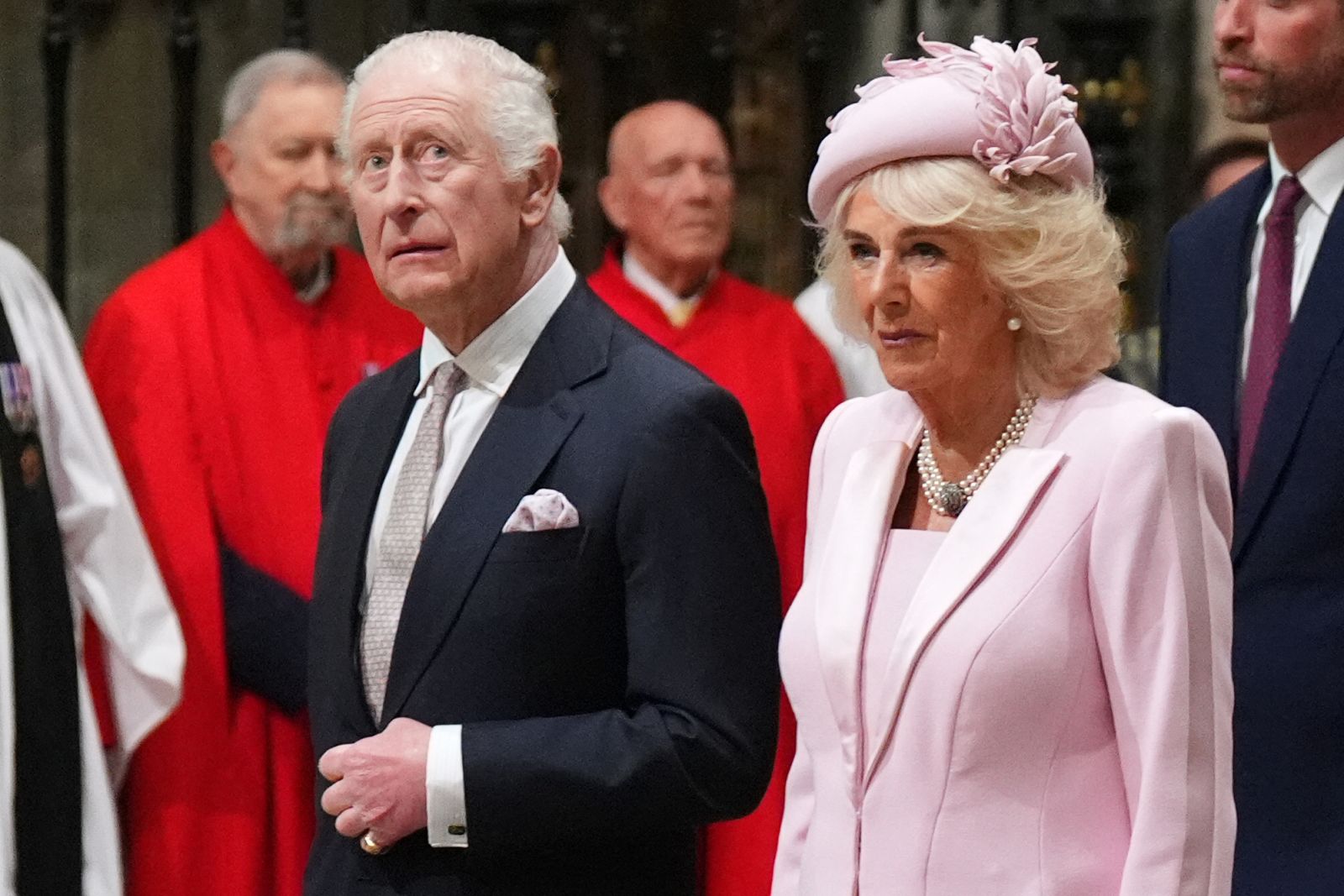 Britain's King Charles III (L) and Britain's Queen Camilla (R) (Photo by Aaron Chown / POOL / AFP)