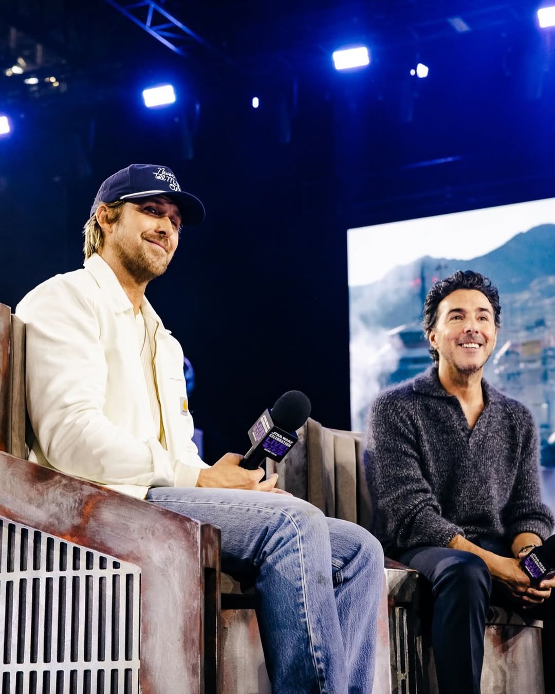 Gosling's lifelong passion for the franchise was on display at the event, which showed his childhood Star Wars bedsheets on screen.