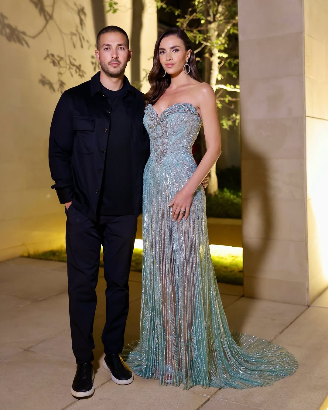 For her hairdo, Zein Qutami chose waves with big curls and a simple side part. This gave her an elegant look that fit in with the party mood. Bassam Fattouh did her makeup, and he used warm brown shades that made her skin look better in a way that was natural and went well with the color of her dress.