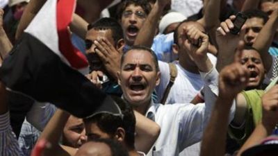 محتجون في ميدان التحرير يوم 8 يوليو تموز