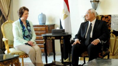 اشتون خلال لقائها الرئيس المصري المؤقت عدلي منصور