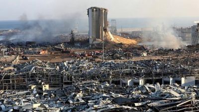 يشار إلى الانفجار الذي وقع في مرفأ بيروت يوم الثلاثاء الماضي خلف 154 قتيلا وزهاء خمسة آلاف جريح، ودمارا هائلا وأضرارا بالعديد من الأبنية. (د ب أ)