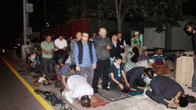 أدى عدد من الأتراك، قدموا من مدينة قونيا، صلاة الفجر، أمام مبنى السفارة الإسرائيلية في العاصمة التركية أنقرة، قبيل توجههم إلى اسطنبول من أجل المشاركة في “مسيرة القدس حرة”، التي تنظمها هيئة الإغاثة الإنسانية التركية (?HH) بعد ظهر اليوم الأحد أمام مسجد الفاتح في اسطنبول، في الذكرى السنوية الخامسة للهجوم الإسرائيلي على سفينة “مرمرة الزرقاء”.