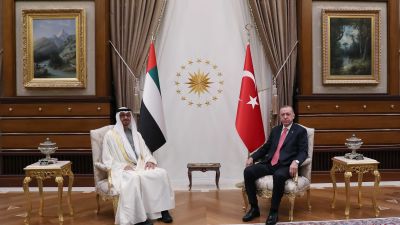 وكان الرئيس التركي رجب طيب أردوغان استقبل ولي عهد أبو ظبي، الشيخ محمد بن زايد، يوم الأربعاء الماضي، في أنقرة.