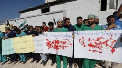 تظاهر أكثر من 300 طبيب ومسعف الاحد في محافظة إدلب شمال سوريا، مطالبين المجتمع الدولي بالحماية من هجوم محتمل لقوات النظام على هذه المنطقة التي تنتشر فيها فصائل مسلحة معارضة وجهادية.