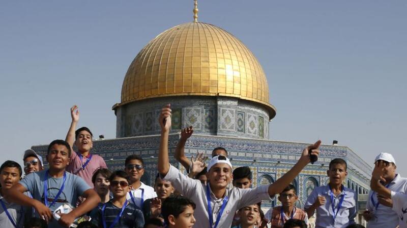 وافاد مراسل فرانس ان الاطفال صلوا في المسجد الاقصى والتقطوا صورا قبل ان يغادروا وكانوا “فرحين للغاية”.