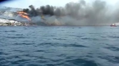 وتصاعدت أعمدة من الدخان من موقع الحادث وكان يمكن مشاهدة حطام الطائرة على الصخور.