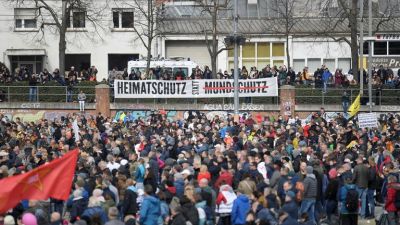 خرج آلاف الأشخاص في مسيرة في مدينة شتوتغارت الألمانية للاحتجاج على القيود الخاصة باحتواء فيروس كورونا.