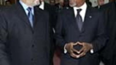 اكد امين عام الامم المتحدة كوفي انان في بغداد التي وصلها السبت على "ضرورة الوفاق الوطني"، فيما وصف رئيس الوزراء العراقي ابراهيم الجعفري التقارير عن وفاة عزة ابراهيم الدوري نائب صدام حسين، بانها انباء طيبة.
