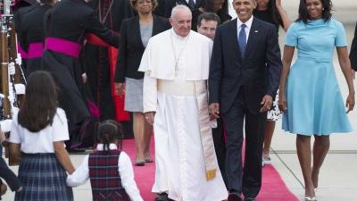 والامر النادر ان اوباما البروتستانتي، استقبل شخصيا الثلاثاء على مدرج قاعدة اندروز، هذا البابا الارجنتيني الذي يطأ للمرة الاولى في حياته الاراضي الامريكية.