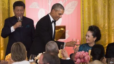 استقبل الرئيس باراك أوباما والسيدة الأولى ميشيل الرئيس الصيني شي جينبينغ وزوجته بونغ ليوين في عشاء رسمي بالبيت الأبيض مساء الجمعة حضره رموز السياسة والإعلام والتكنولوجيا والفن، وذلك في ختام زيارة الوفد الصيني للولايات المتحدة.