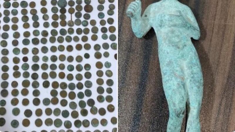 ومن المضبوطات الأثرية تمثال من البرونز للإلهة "أفروديت" من العصر الروماني، وعدد 1752 قطعة أثرية منها 1722 عملة من الفضة ومعادن أخرى تعود للعصر البطلمي وعصر الأباطرة نيرون، وهادريان، وأنطونيوس بيوس والتي تنتمي لدار سك الإسكندرية، و20 مثقالا لوزن العملة من البرونز بأحجام وأوزان مختلفة، و6 عملات من الدنانير الذهبية والدراهم الفضية والتي كتب على هامشها رسالة التوحيد وجزء من سورة التوبة، وقوالب لسك العملة من العصور الإسلامية المختلفة مكتوب عليها بالخط الغائر وأخرى من العصر الروماني محفور عليها عبارات باللغة اليونانية.