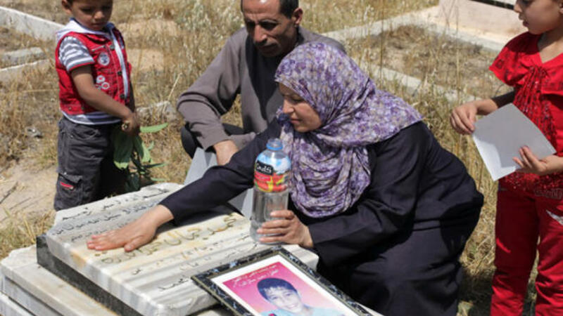 عائلة محمد في زيارة لقبره/ارشيف