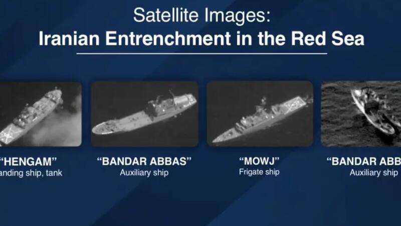 وعرض وزير الدفاع الإسرائيلي بيني غانتس امام مؤتمر اقتصادي في العاصمة اليونانية أثينا، صورا لما قال إنها أربع سفن حربية إيرانية التقطت عبر الأقمار الاصطناعية خلال تواجدها في البحر الأحمر.