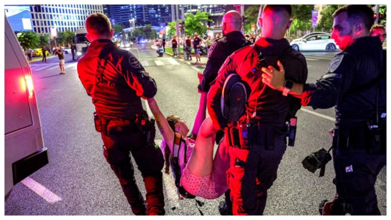 خرجت أضخم مظاهرة مناهضة للحرب منذ بدئها، حيث قدّر "منتدى عائلات الرهائن" عدد المشاركين بنحو 100 ألف شخص.