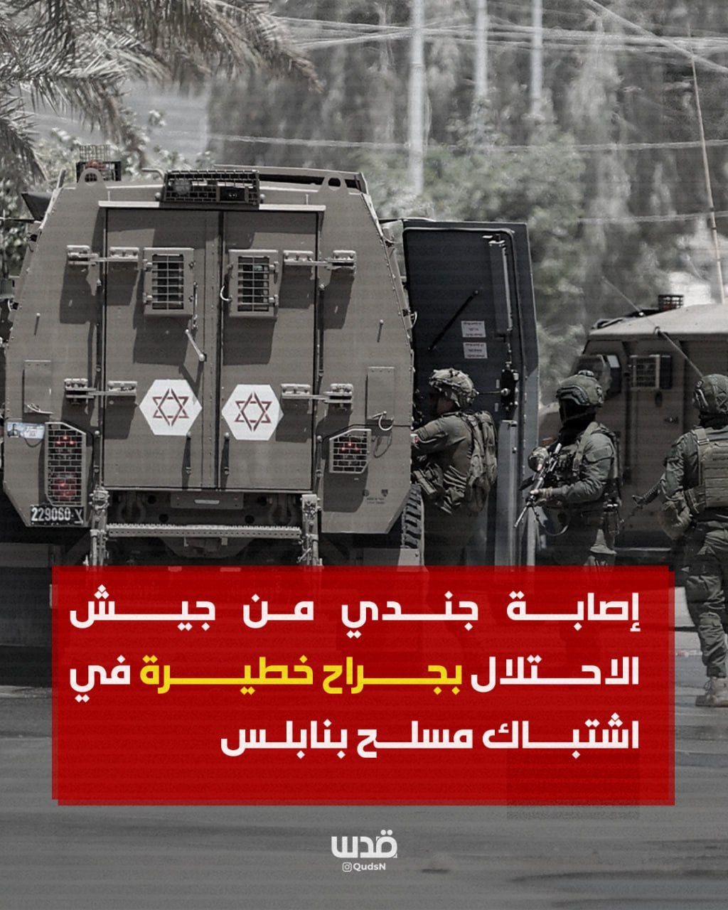 اعترف جيش الاحتلال الإسرائيلي بإصابة أحد جنوده بجراح خطيرة خلال اشتباك مسلح في مخيم بلاطة شرق نابلس فجر اليوم.