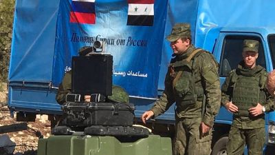 أعلنت وزارة الدفاع الروسية أن عسكريين روسيين أصيبا بجروح في عملية قصف من قبل مسلحين استهدفت معبر الكاستيلو الإنساني شمال مدينة حلب السورية، الجمعة 4 نوفمبر/تشرين الثاني.