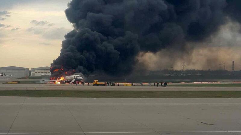 أصيب شخصان على الأقل إثر اشتعال النيران في طائرة ركاب لدى هبوطها اضطراريا قرب موسكو صباح اليوم الخميس، حسبما ذكرت وكالة ريا نوفوستي للأنباء.