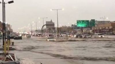 وبدأ هطول الامطار في ساعة الذروة مساء امس واستمرّ حتى فجر الاربعاء، وفق وسائل الاعلام السعودية. وعلى رغم توقّف الامطار في الصباح، الا ان بعض الطرق والشوارع لا تزال مغمورة بالمياه.