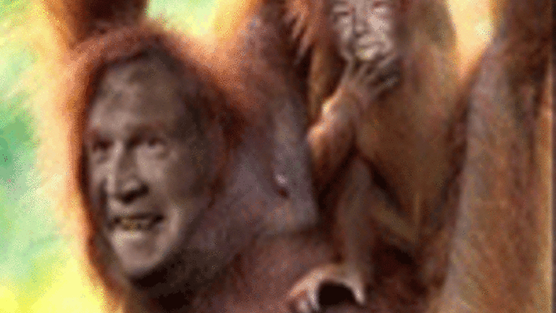 ومن بعيد يشبه الرسم بوش ولكن عندما تقترب ترى ان الصورة مكونة من حيوانات شمبانزي او قرود تسبح في مستنقع. وقال سافيدو (23 عاما) انه فوجيء برد الفعل العنيف على لوحته التي تحدد لها سعر 3500 دولار في كتيب المعرض.