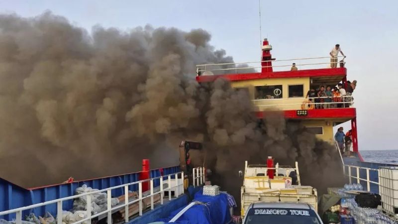 وأظهر مقطع فيديو أشخاصا يقفزون إلى البحر مرتدين سترات النجاة، فيما اجتاح دخان أسود كثيف العبارة التي تعتبر مقصدا سياحيا.