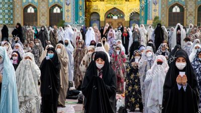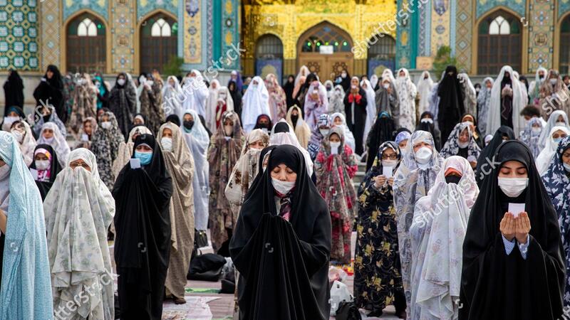 في طهران حيث لا تزال غالبية المساجد مغلقة من أجل منع تفشي فيروس كورونا المستجد، شارك المؤمنون في صلاة الصبح الجماعية لكن مع احترام قواعد التباعد.