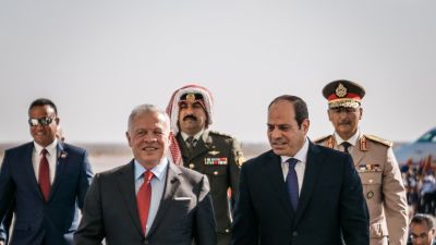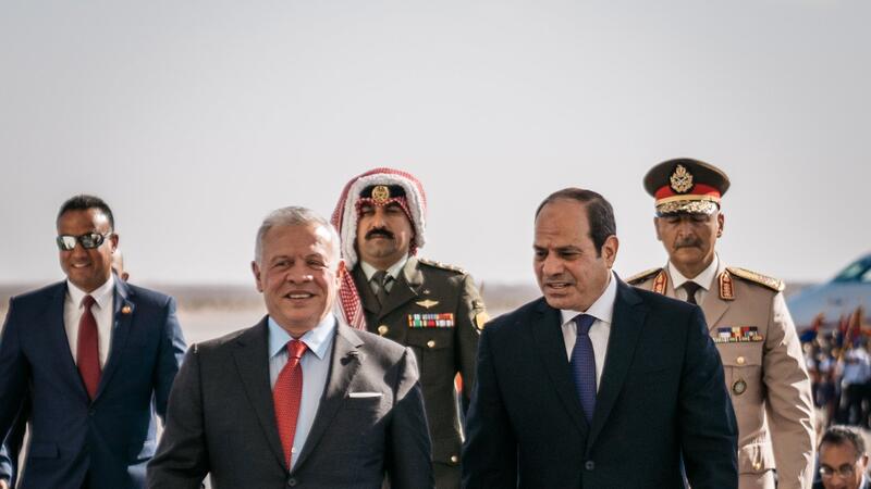 ووصل الى العلمين في الساحل الشمالي المصري ملك الاردن عبدالله الثاني بن الحسين حيث كان في استقباله الرئيس عبدالفتاح السيسي ، وسيشارك العاهل الاردني في القمة الخماسية والاخرى الثلاثية التي تجمعه بقادة مصر والعراق
