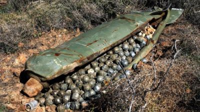 وقال مصدر امني ان "الشرطة تلقت بلاغا باختفاء حاوية تحتوي على 100 قنبلة عنقودية غير منفلقة في قضاء الزبير بمحافظة البصرة".