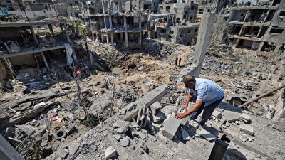 عملت طواقم إسعاف وعمال إنقاذ على مدار ساعات يوم الجمعة بحثا عن مفقودين بعد سريان اتفاق لوقف إطلاق النار بين فصائل المقاومة الفلسطينية وإسرائيل.