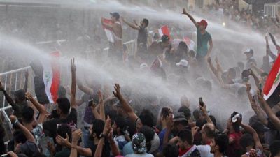 وكانت قوات مكافحة الشعب قد فضّت بالقوة، السبت، احتجاج المتظاهرين على جسور العاصمة بغداد المؤدية الى المنطقة الخضراء، مما أوقع قتلى وجرحى.