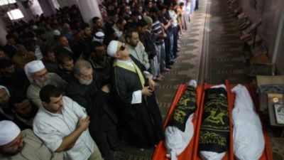 فلسطينييون يصلون على جثامين شهداء قضوا بغارات إسرائيلية في غزة