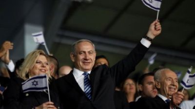 رئيس الوزراء الاسرائيلي بنيامين نتانياهو والى يساره الرئييس شمعون بيريز