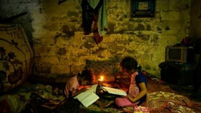 أطفال فلسطينيون يدرسون اثناء انقطاع الكهرباء عن غزة