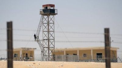 جندي مصري يقف على برج مراقبة عند الحدود مع اسرائيل