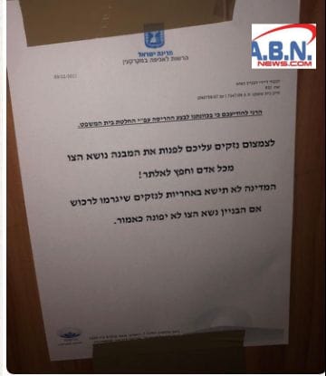 قالت مصادر فلسطينية ان جيش الاحتلال يخطر بهدم بناية سكنية يقطنها خطيب المسجد الاقصى "عكرمة صبري "، وذلك بعد قليل من اقتحام منزله وتفتيشه وتعليق قرار بالهدم